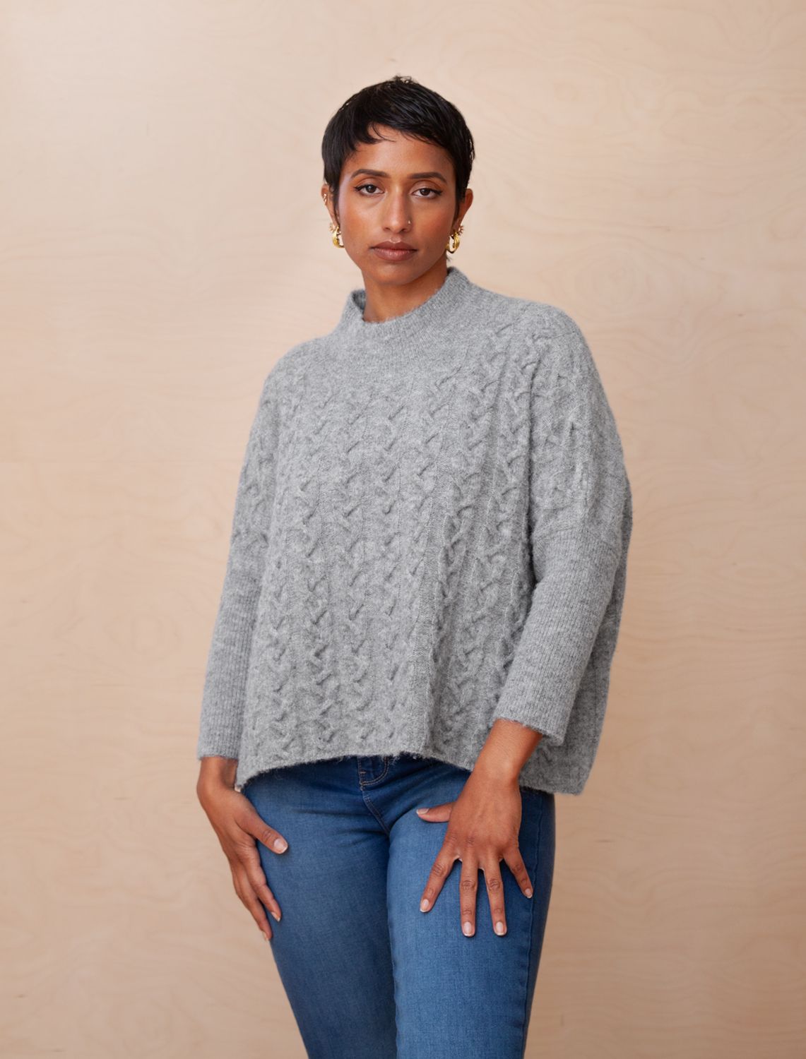 Aja Frenchie Grey Ribslv Mocknk Cable Sweater