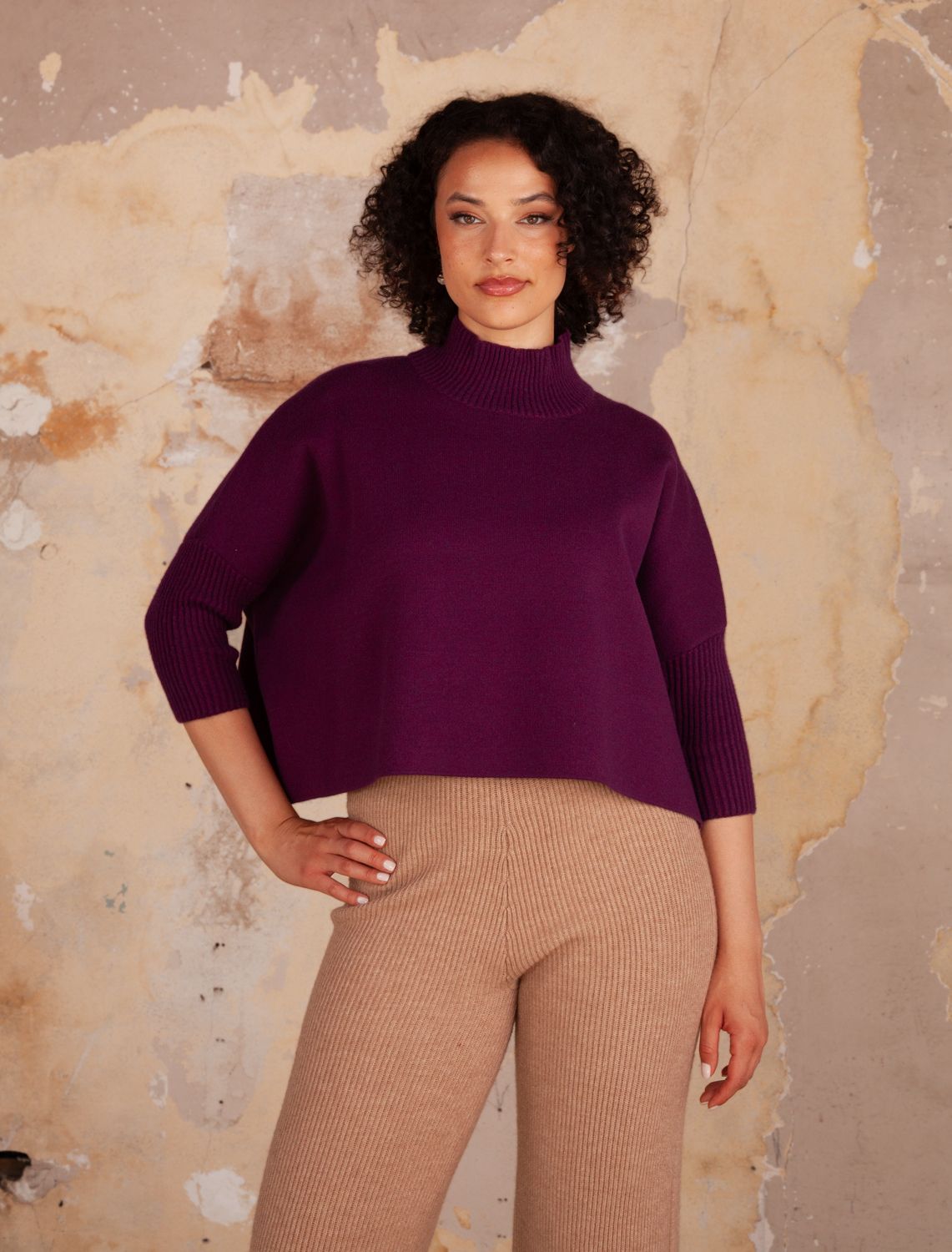Aja Purple Wine 3/4 Ribslv Mocknk Sweater