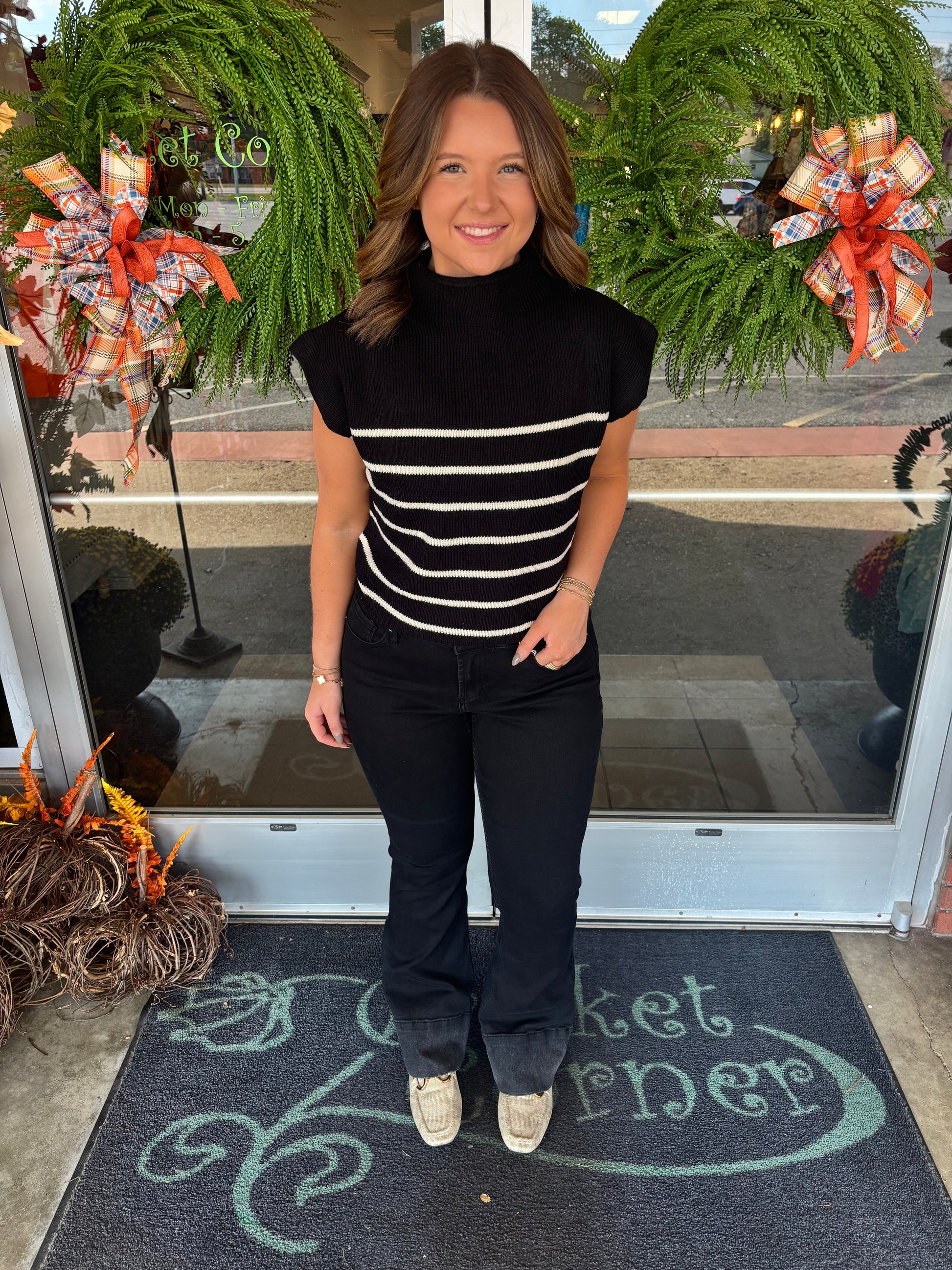 Black Mock Neck striped sweater