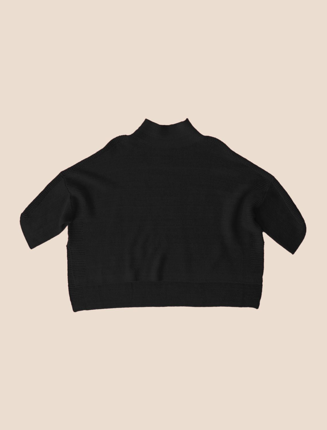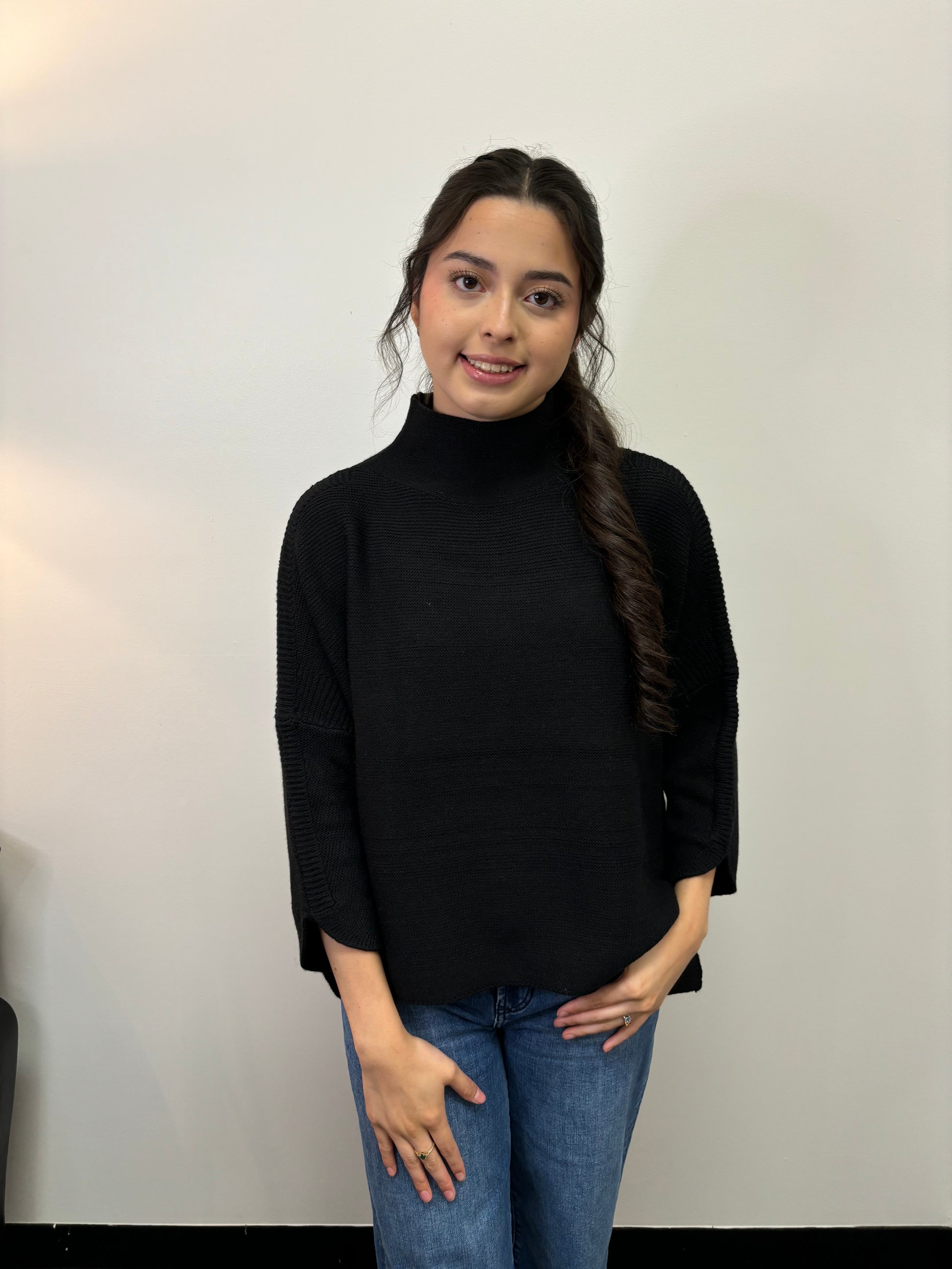 Boho Black 3/4Slv Sideslit Turtlenk Sweater