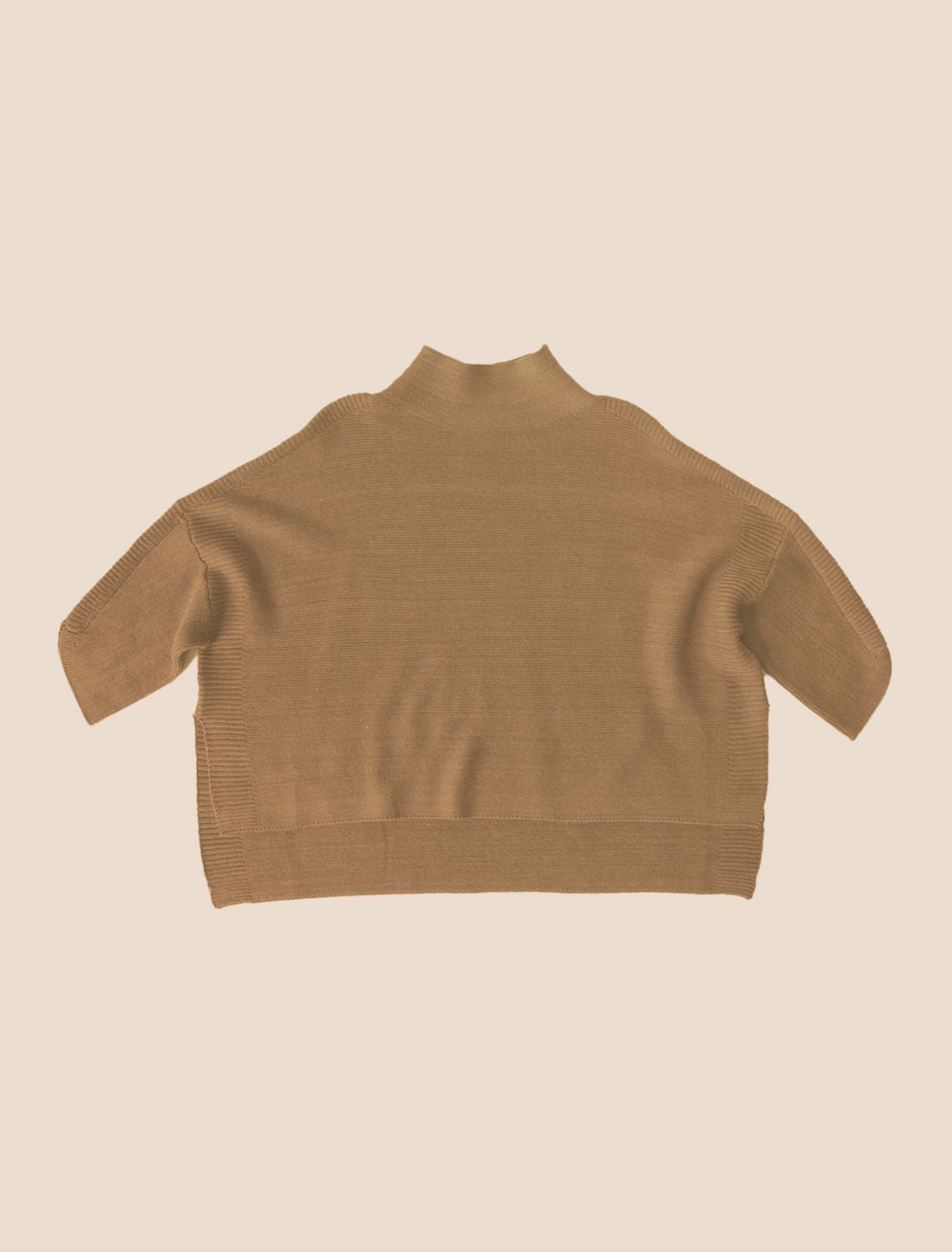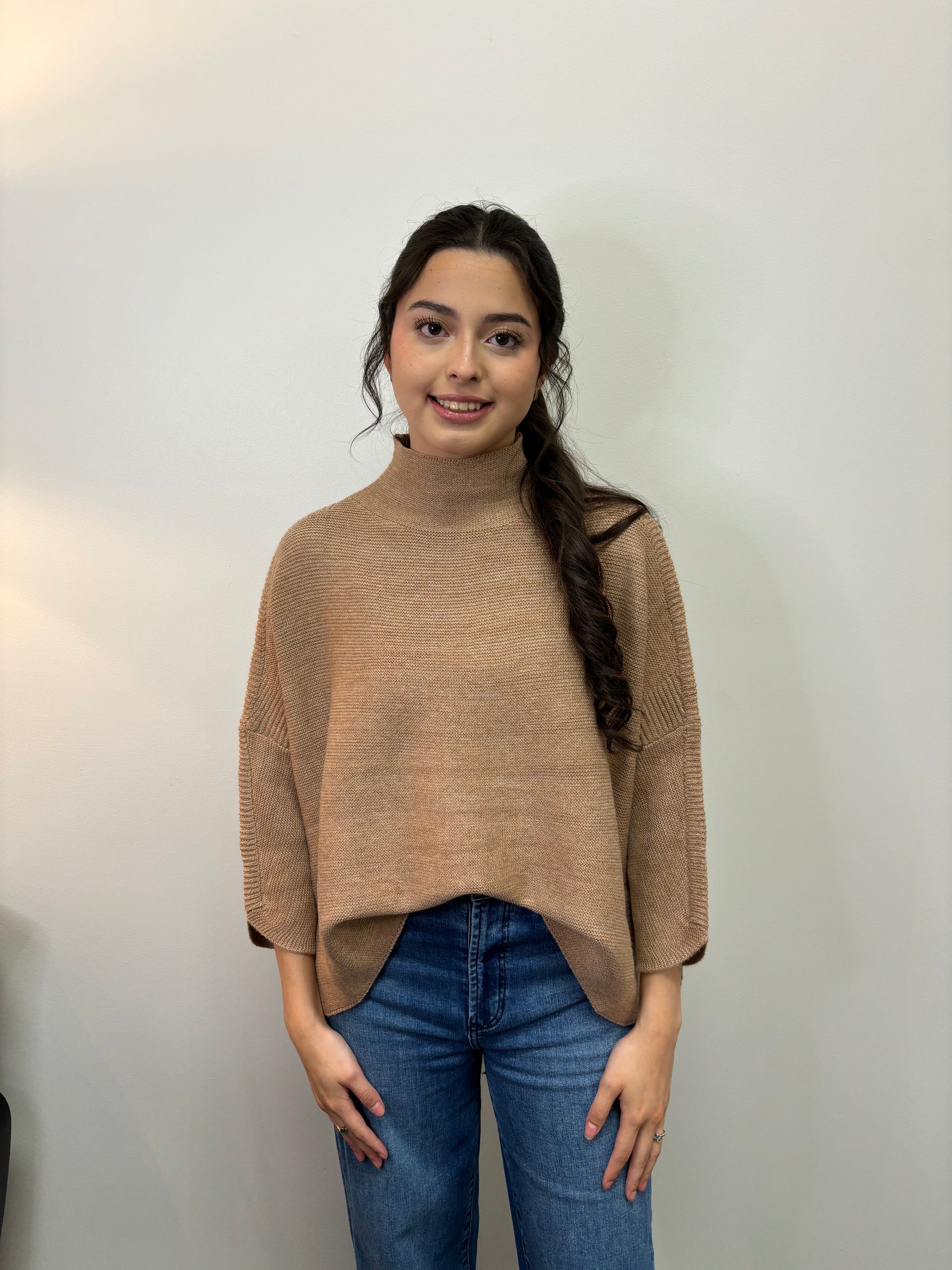 Boho Camel 3/4Slv Sideslit Turtlenk Sweater