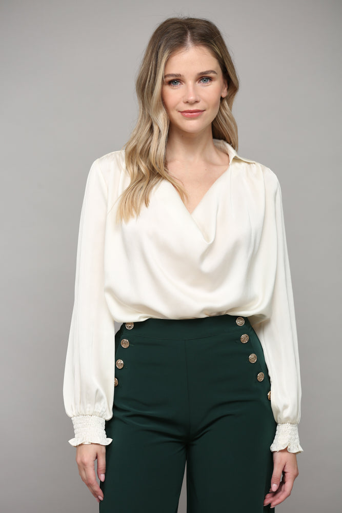 Cream Cowl Neck satin blouse