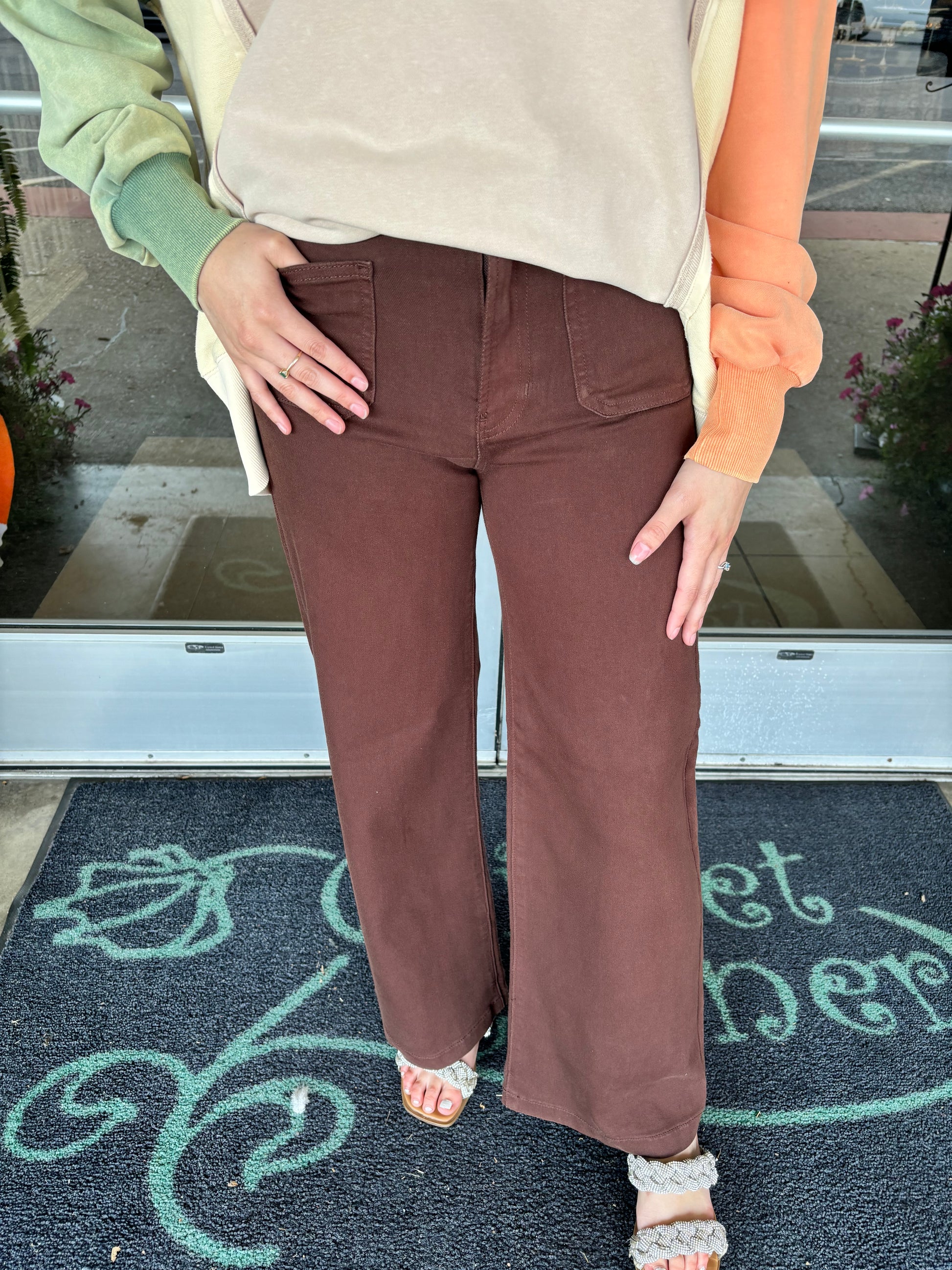 Dark Brown Patch Pocket Wide Leg Jean