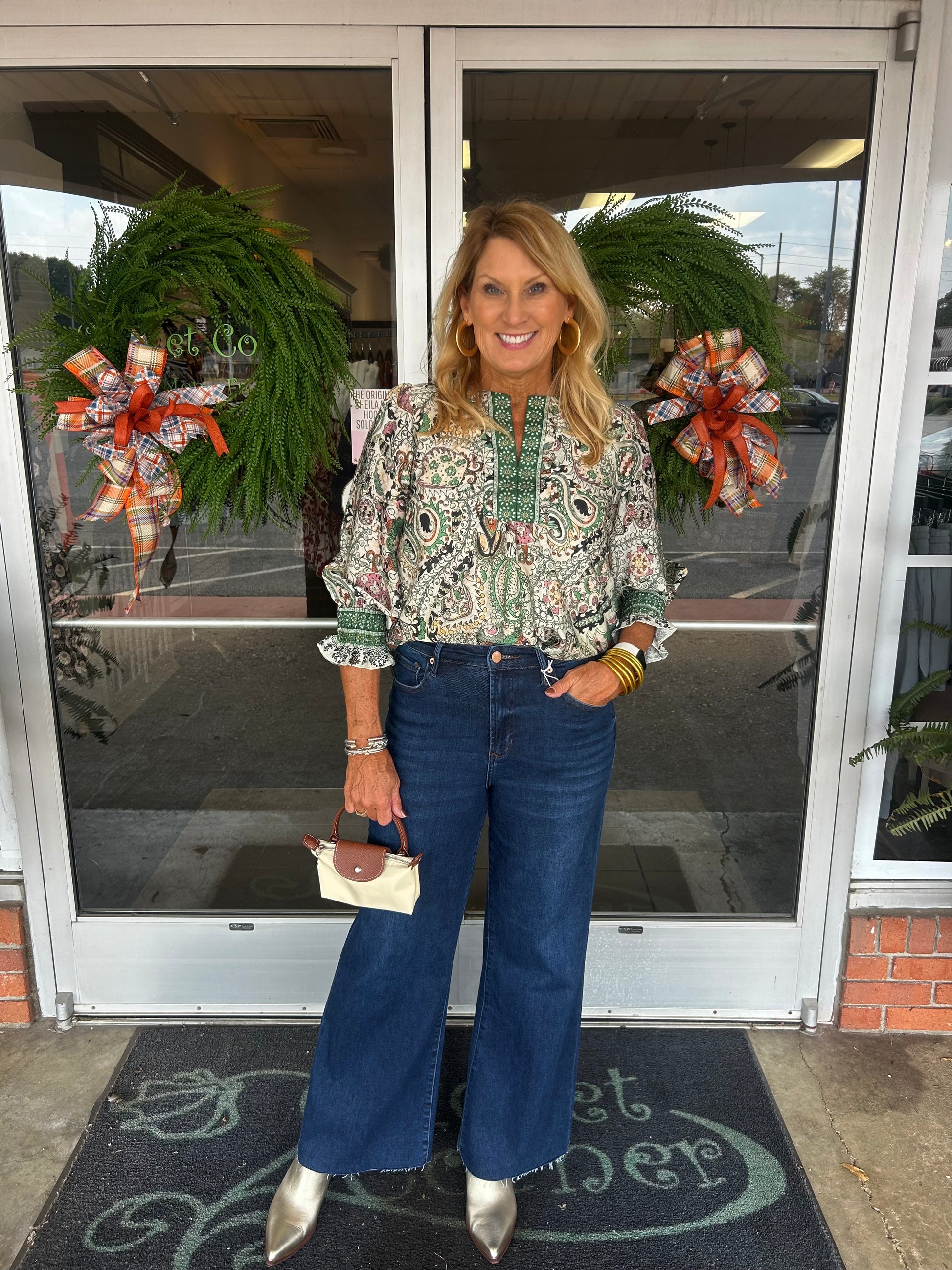 Green Multi Pinwheel Border Placket Top