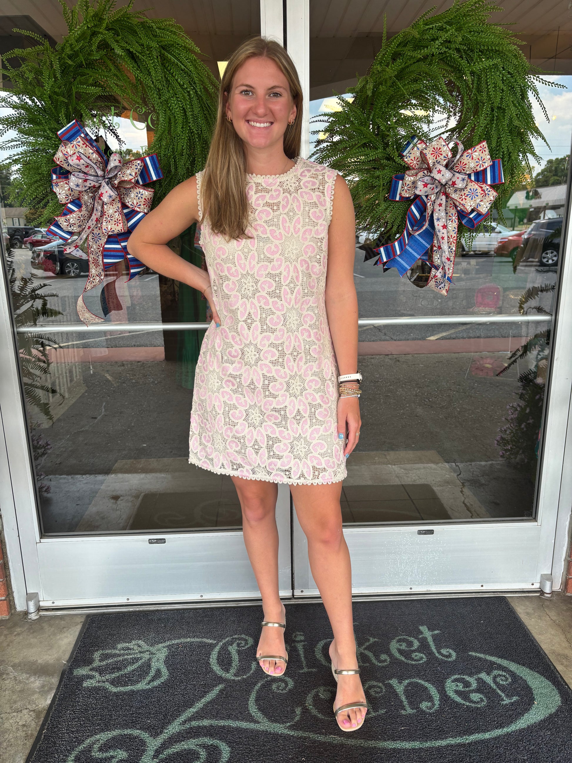 Pink & Cream Crochet Mini Dress