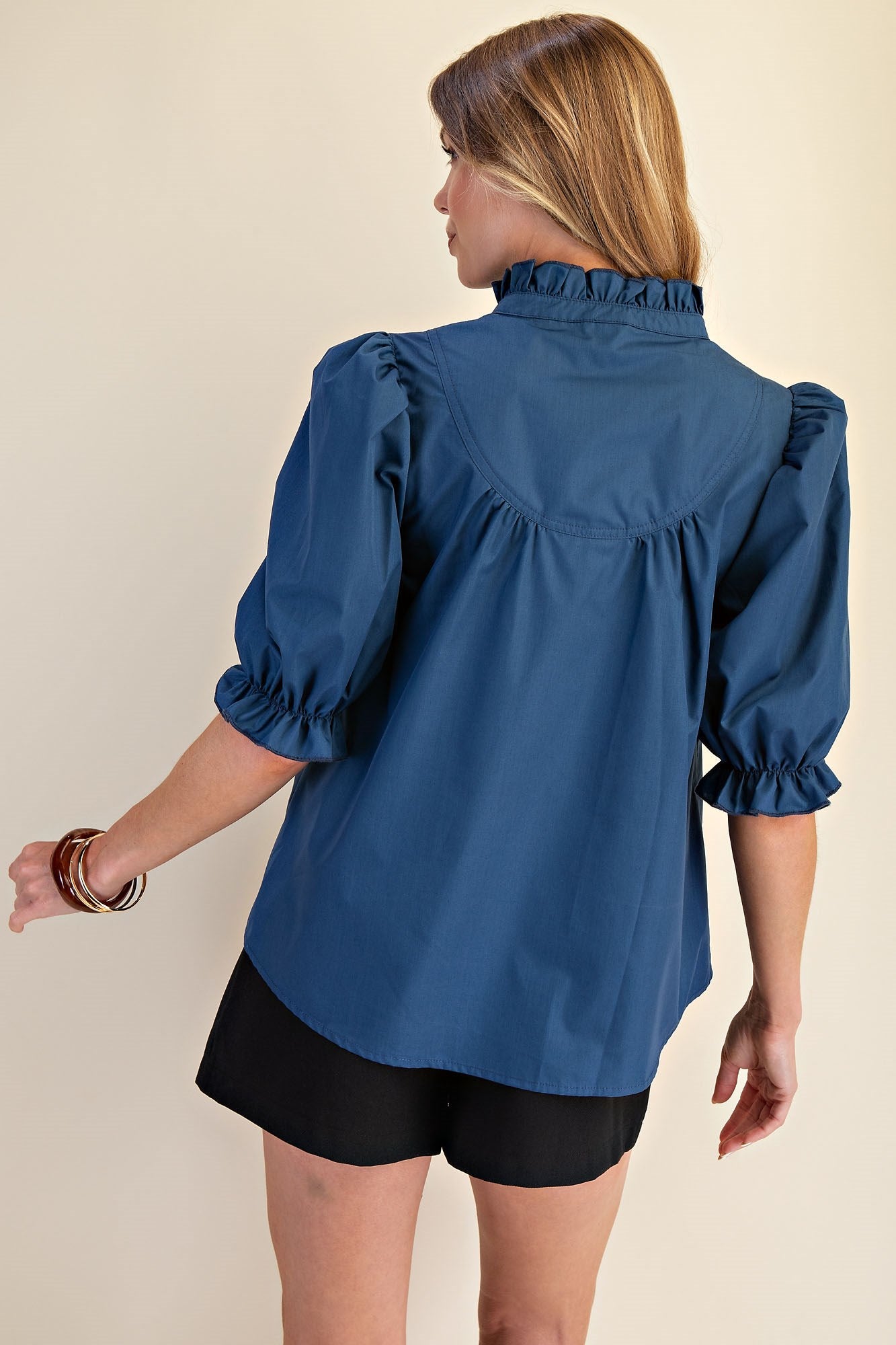 Solid Teal Puff Sleeve Woven Top